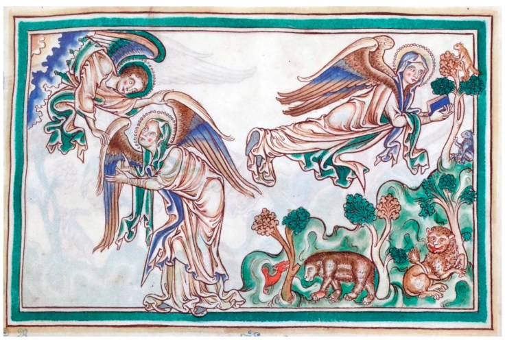 Next comes the antithesis, the Dragon. He appears here in the sky, for the devil can only be perceived through a contemplative gaze of faith. The devil eludes science; he also eludes the philosophers; he eludes our human reason. A contemplative gaze of faith is required to recognize the Dragon’s presence. And in faith, he is always present; here, he reveals himself. “A great Dragon.” It is the power of the Dragon that is manifested here first and foremost, and as we shall see later: the Dragon is both serpent and dragon. Revelation unites the two: the serpent is cunning, and the dragon is powerful. He intimidates the Woman at the very moment she experiences her greatest fragility in her fertility, in the pains of childbirth. All fertility is manifested through great fragility, because it is formed of love, and of the overflow of love. By attacking the Woman at the moment when she is aware of her fragility, he is overly self-confident.